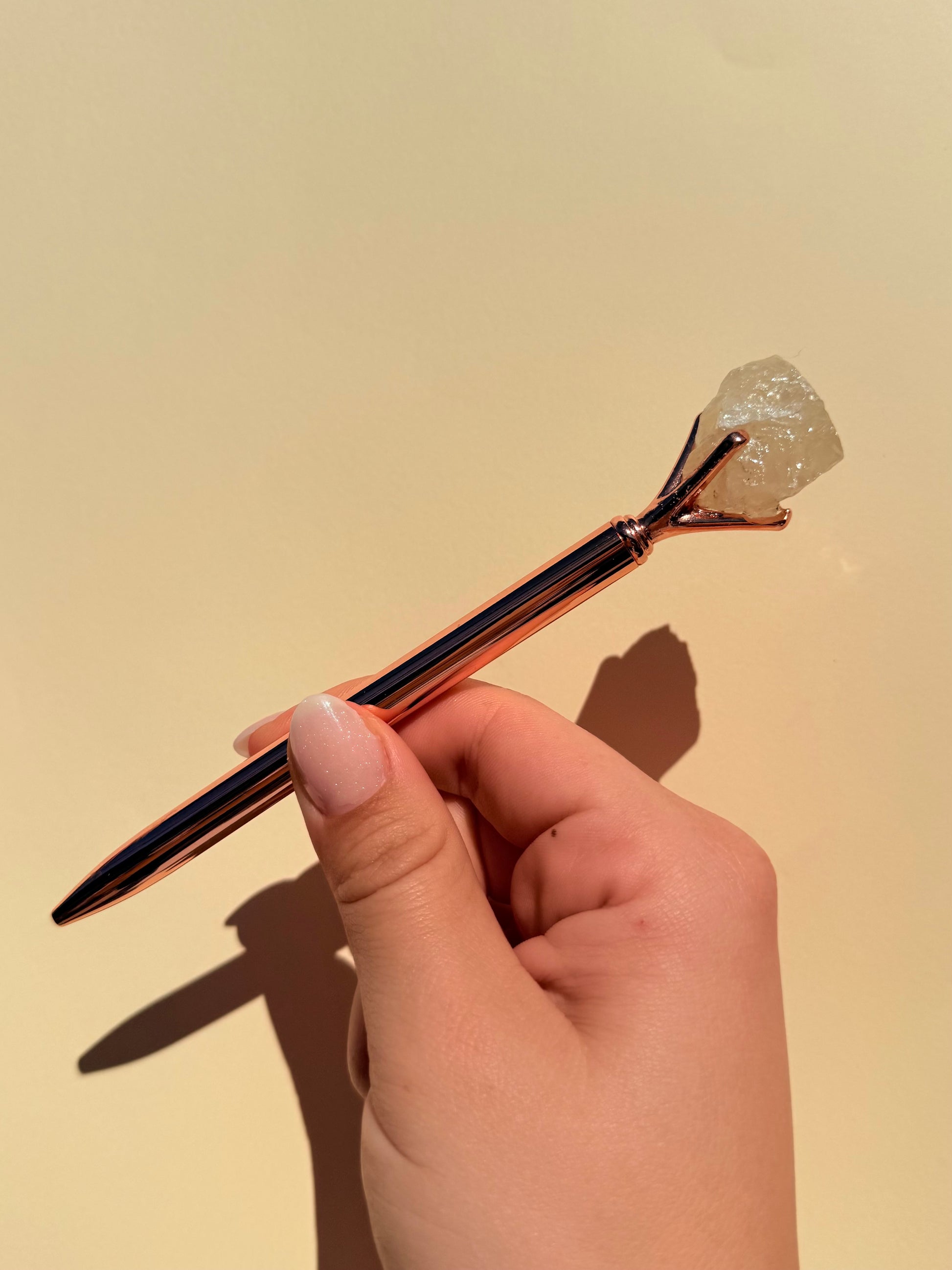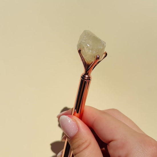 Escribe con intención y propósito con este bolígrafo único que lleva la energía del Citrino. Perfecto para tu práctica de journaling de abundancia, manifestación y éxito.