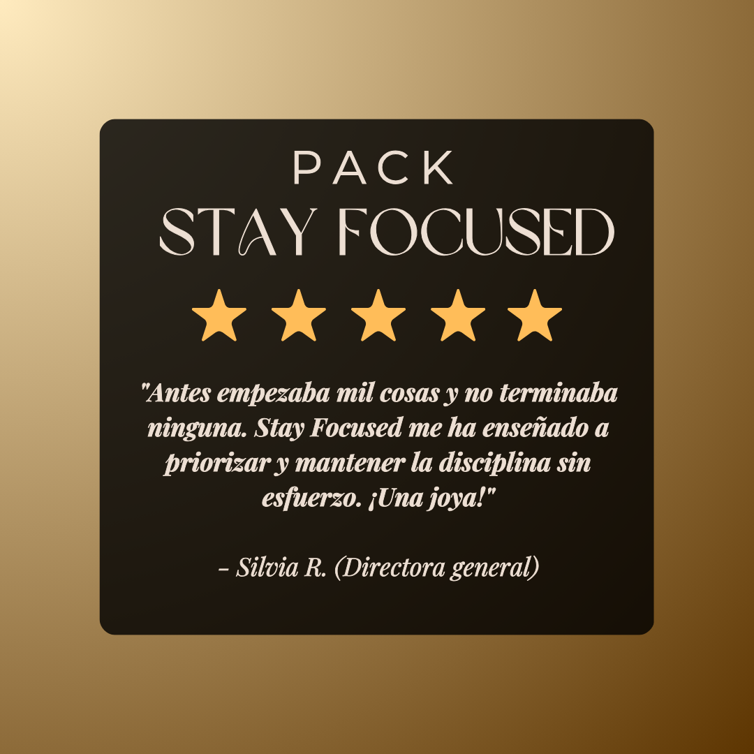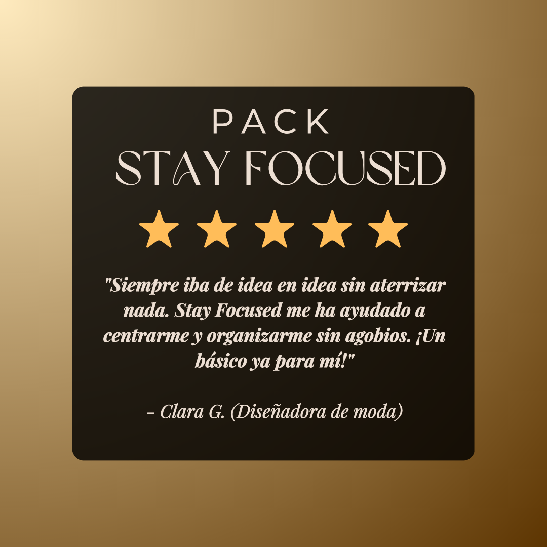 El pack STAY FOCUSED te acompaña en tu camino hacia la disciplina y el logro de tus objetivos.